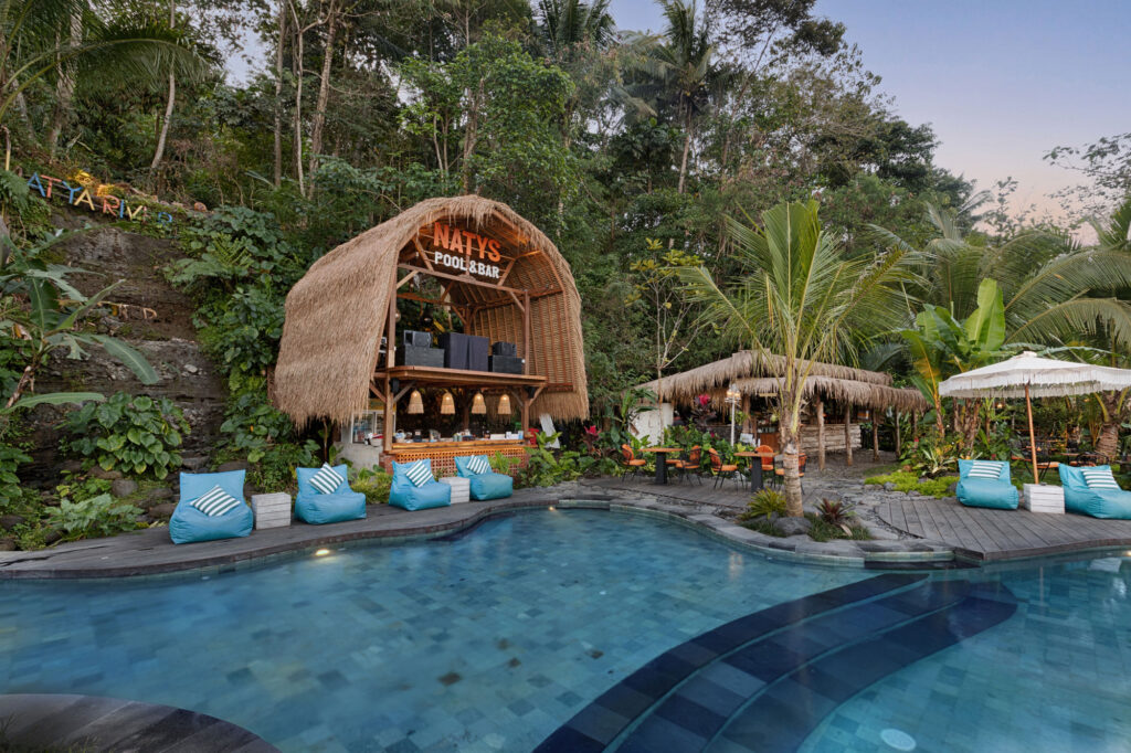 Relax and unwind at Naty’s Pool Bar, the perfect spot to soak in the stunning beauty of Natya River Sidemen while enjoying a refreshing drink. Overlooking the lush rice terraces and the flowing Unda River, this serene poolside bar offers a curated selection of tropical cocktails, fresh juices, and light bites, all served with warm Balinese hospitality.