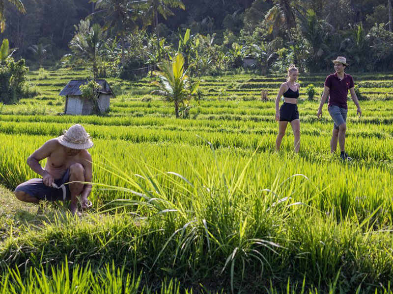 Reconnect with nature through guided trekking tours at Natya River Sidemen, where you’ll journey across vibrant rice paddies, forested hills, and sacred temples.